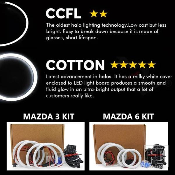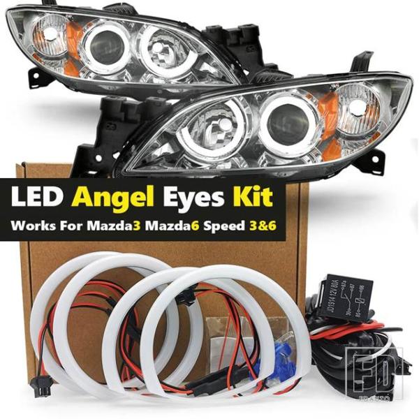 マツダ 3 6 MAZDA3 BK 2003-2009 6 MPS 2002-2008 用 4個 超高輝度コットンエンジェルアイキット ハローリング DRL - Mazda 3 Kit