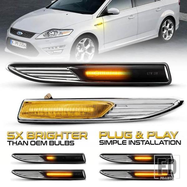 フォード 2個 LED ダイナミック サイドマーカー ウィンカーライト シーケンシャル ブリンカー ランプ モンデオ 4 MK4 BA7 03.2007-01.2015 # 7