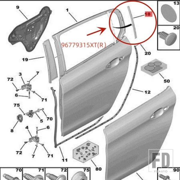 プジョー 308S ウィンドウリアヒンジサイドドアビード 96779315XT 96779316XT T9 スライドガイドトリムに - 96779315XT R
