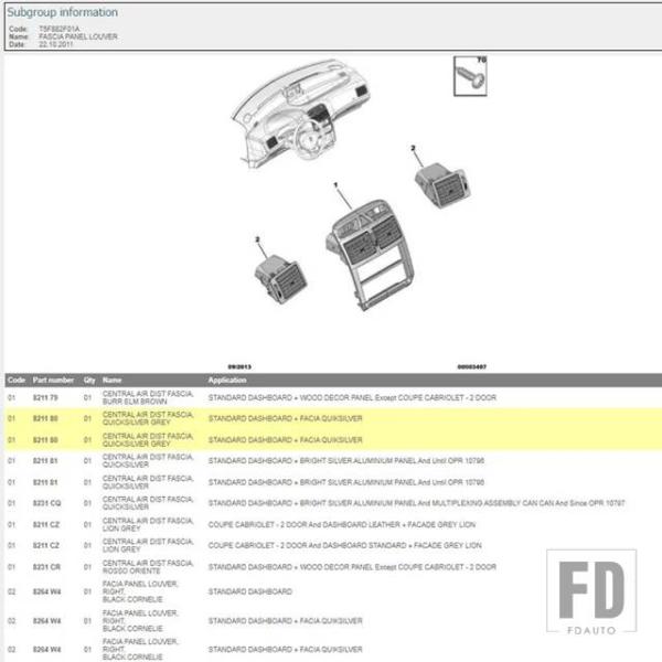 プジョー 307 インストルメントパネルエアアウトレットミドル空調エアアウトレット 8231CS セントラルエアディストフェイシアに - panel