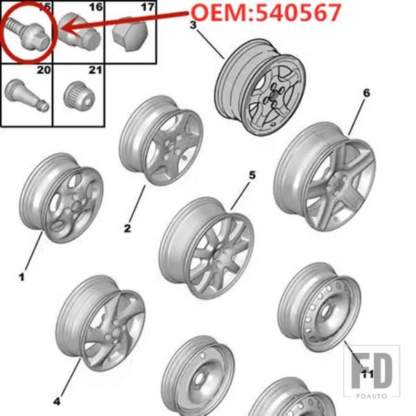 シトロエン プジョー 206 207 307 308 407 607CC SW 3008 RCZ DS C4 C5 C6 ホイールボルトホイールハブネジ 540567 タイヤネジに - Two prices