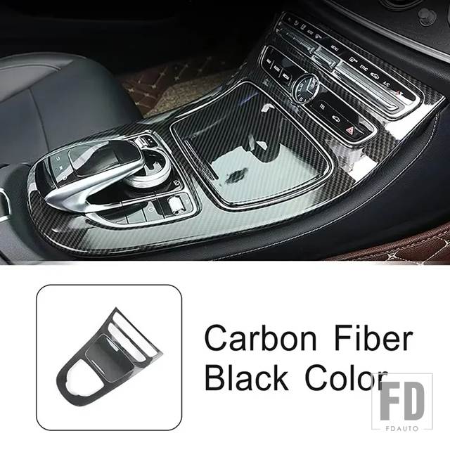 メルセデスベンツ コンソールギアシフトパネルカバーカーボンカラートリム Eクラス W213 2016-2018 インテリアカーアクセサリーステッカー - Carbon black