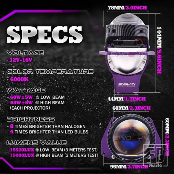 車用ランプ:BI LEDプロジェクターレンズ