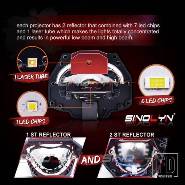 27300 LM 3インチ BI LED レーザー双曲面プロジェクターレンズヘッドライト LED ライトカーアクセサリーレトロフィットスタイリング