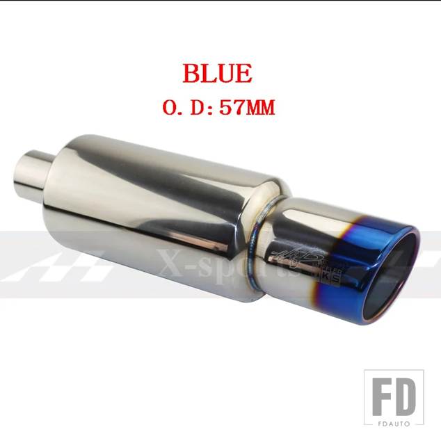 汎用 車バイク排気システムマフラーマフラー先端ステンレス ID 51mm 57 mm 63mmアウトレット 89 mmサイレンサーテールパイプ - BLUE 57MM