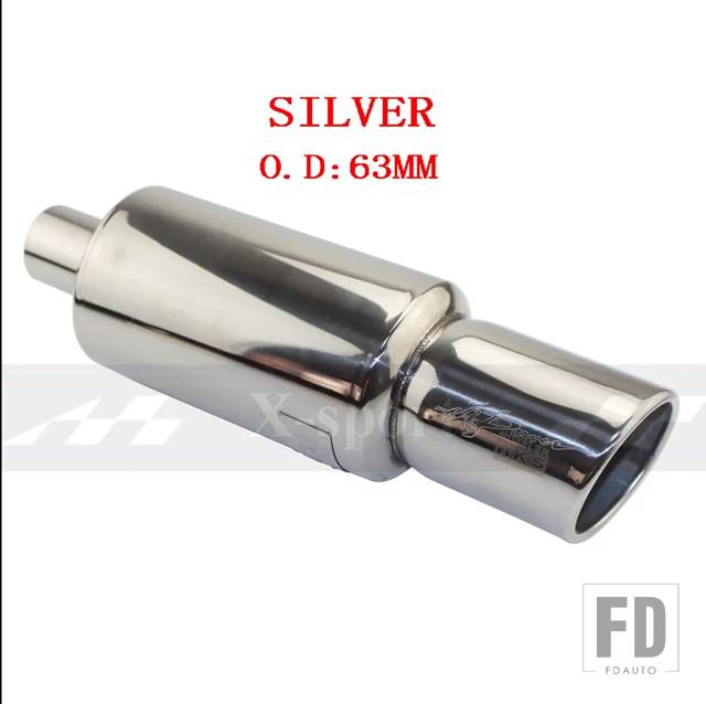 汎用 車バイク排気システムマフラーマフラー先端ステンレス ID 51mm 57 mm 63mmアウトレット 89 mmサイレンサーテールパイプ - SILVER 63MM