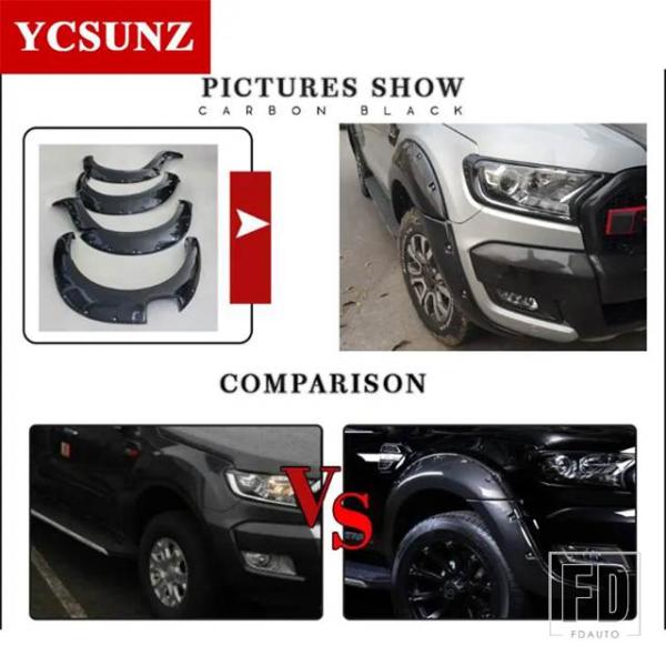 フォード 9インチカーボンマッドガードホイールアーチフェンダーフレアレンジャー WILDTRAK T7 2016 2017 2018 ダブルキャビン