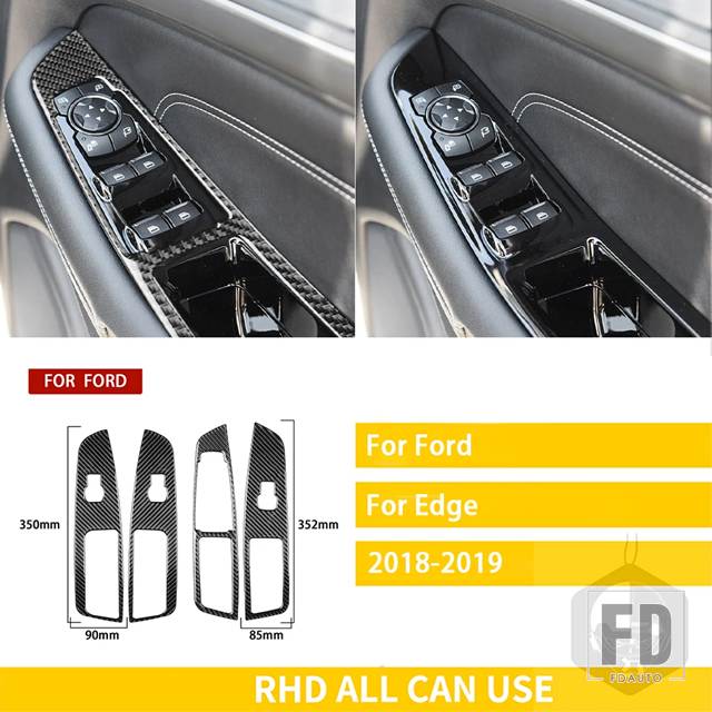 フォード エッジ 2015-19 アクセサリーカーボンインテリアウィンドウコントロールリフティングパネルトリムステッカー装飾