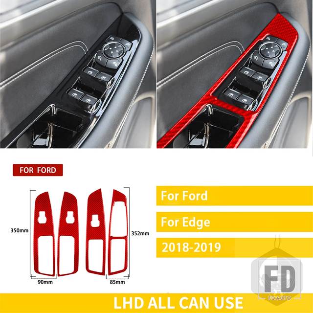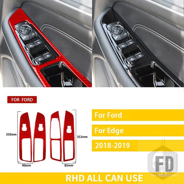 フォード エッジ 2015-19 アクセサリーカーボンインテリアウィンドウコントロールリフティングパネルトリムステッカー装飾 - 2-RHD-red