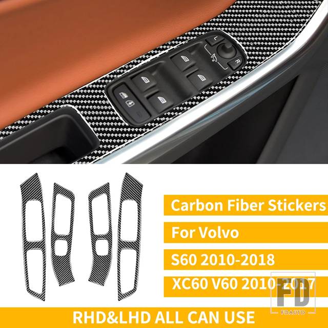ボルボ S60 V60 XC60 2010-2018 アクセサリーカーボンインテリアフルセットカバーステッ - 4 RHD