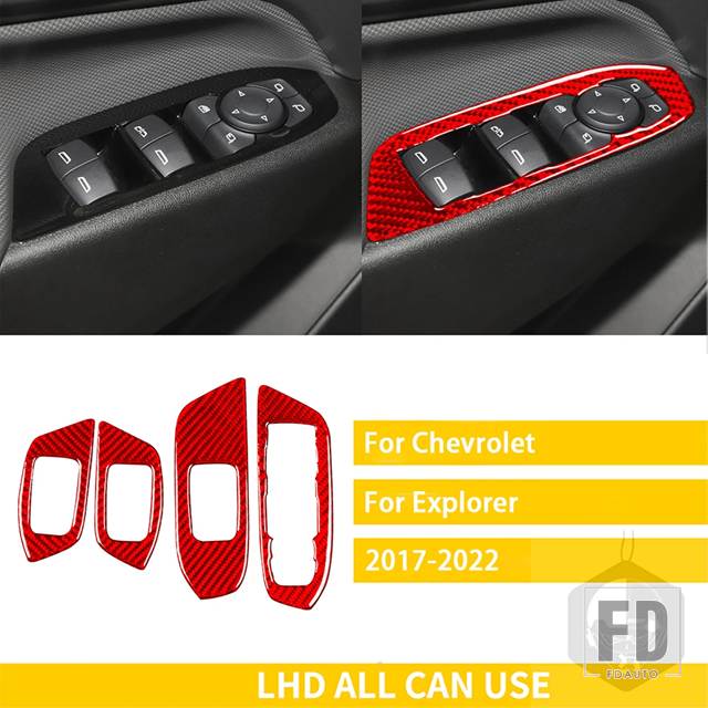 シボレー エクスプローラー 2017-22 アクセサリーカーボンインテリア WINDOWS コントロールパネルトリムステッカー - 2 red
