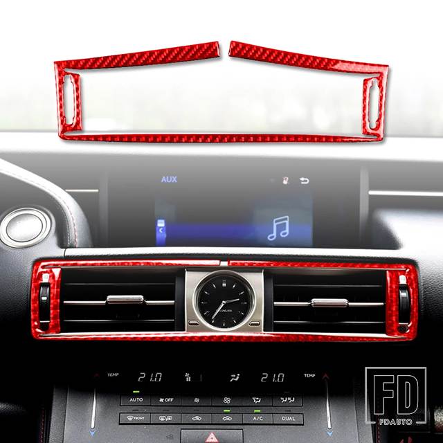 レクサス IS250 300 350C 2013-2020 アクセサリーカーボンインテリア中央制御エアアウトレットフレームトリムステッカー - Red