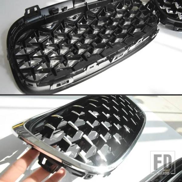 BMW 2シリーズ F45 220I 235I ペアクロームダイヤモンドキドニーグリルメテオスタイルフロントバンパー 2014-2018 カーアクセサリー - Gloss black