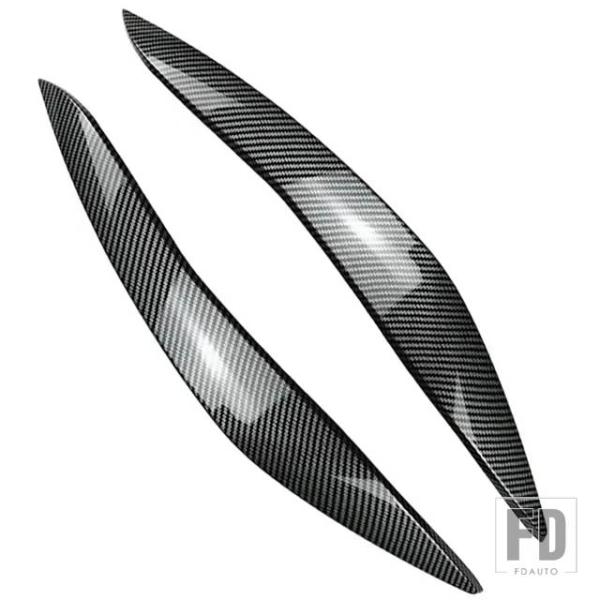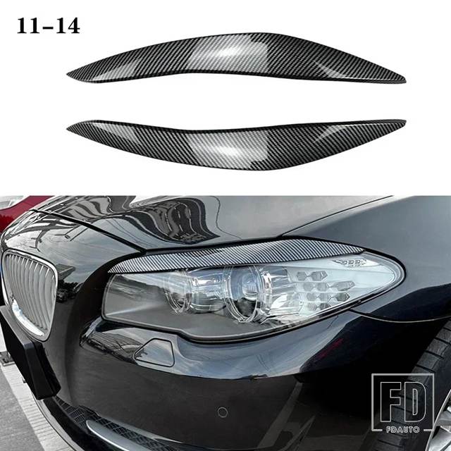 BMW F10 F11 2個 ABS グロスヘッドライト邪悪なアイブロウまぶた 5シリーズ 518D 520D 523I 530I 530D 550I M5 2010-2013 プレ LCI トリム - Carbon Fiber