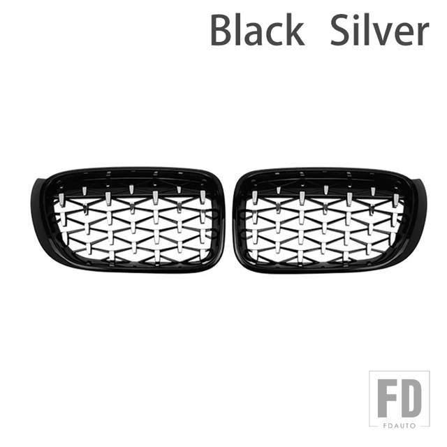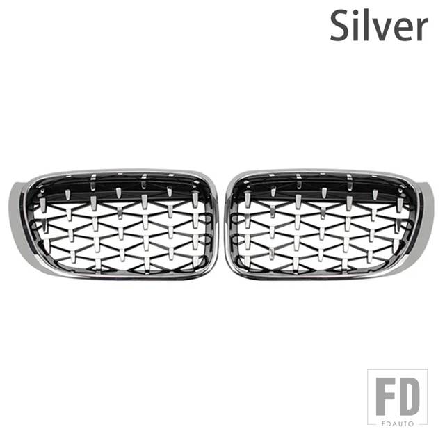 BMW X3 X4 F25 F26CAR フロントグリルレーシンググリルダイヤモンドキドニーグリル 2014-16 クロームメテオスタイルグロスブラック - black silver