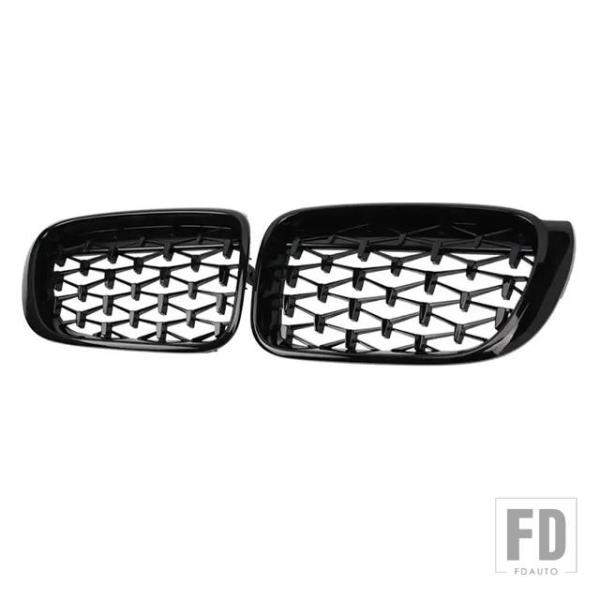 BMW X3 X4 F25 F26CAR フロントグリルレーシンググリルダイヤモンドキドニーグリル 2014-16 クロームメテオスタイルグロスブラック