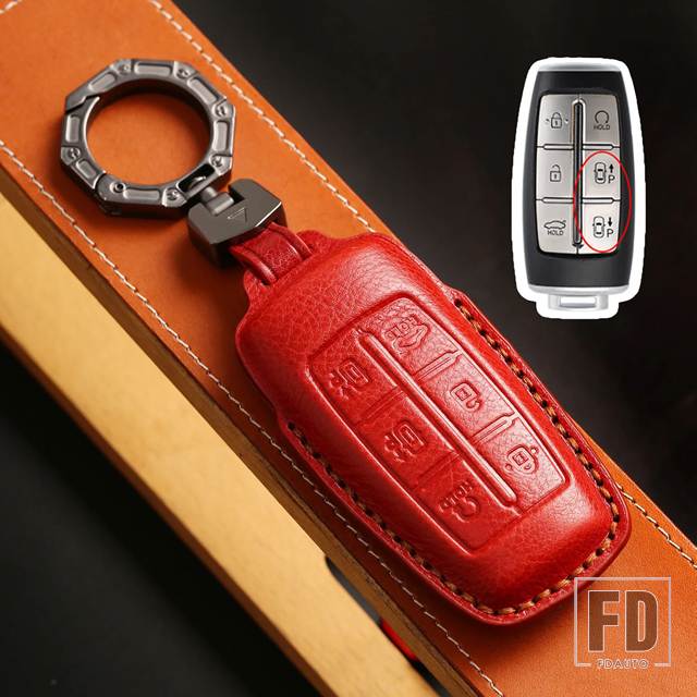 キーフォブジェネシス G70 G80 G90 GV70 GV80 EQ900 DH BH G60 レザーキーケースカバー KEYCHIAN アクセサリー 6 8 ボタン - 6 bottons -red