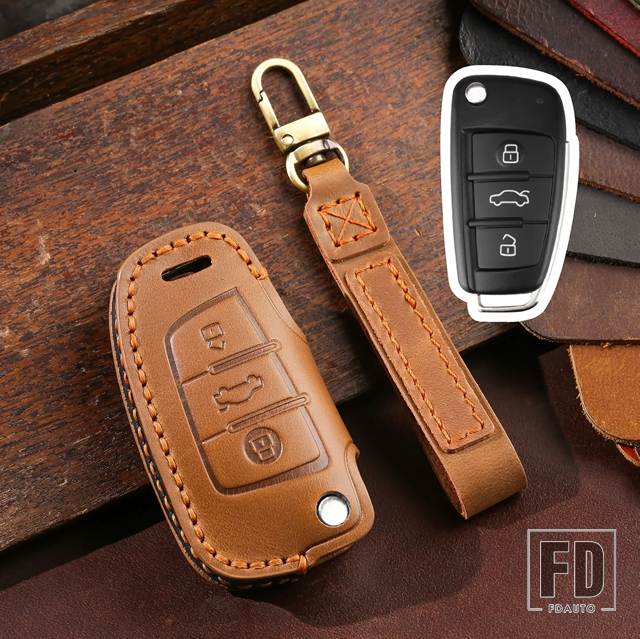 アウディ 革折りたたみキーケースカバー A3 8L 8P A4 B6 B7 B8 A6 C5 C6 4F RS3 Q3 Q7 TT 8L 8V S3 キーフォブシェルアクセサリー - Brown