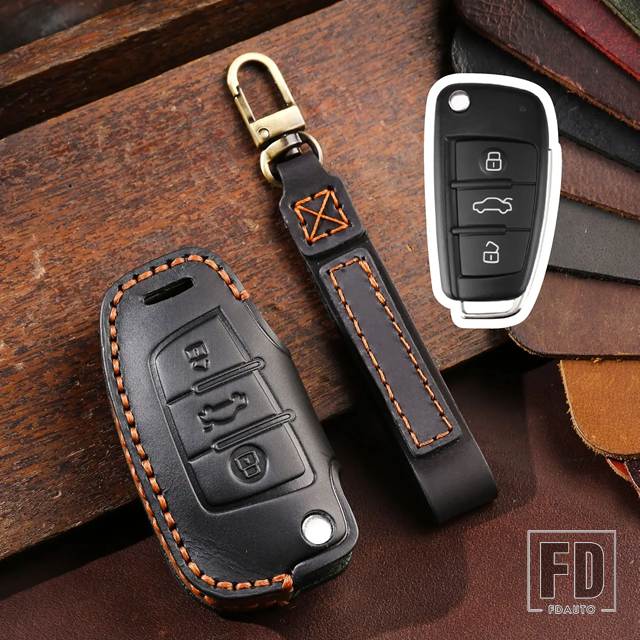 アウディ 革折りたたみキーケースカバー A3 8L 8P A4 B6 B7 B8 A6 C5 C6 4F RS3 Q3 Q7 TT 8L 8V S3 キーフォブシェルアクセサリー
