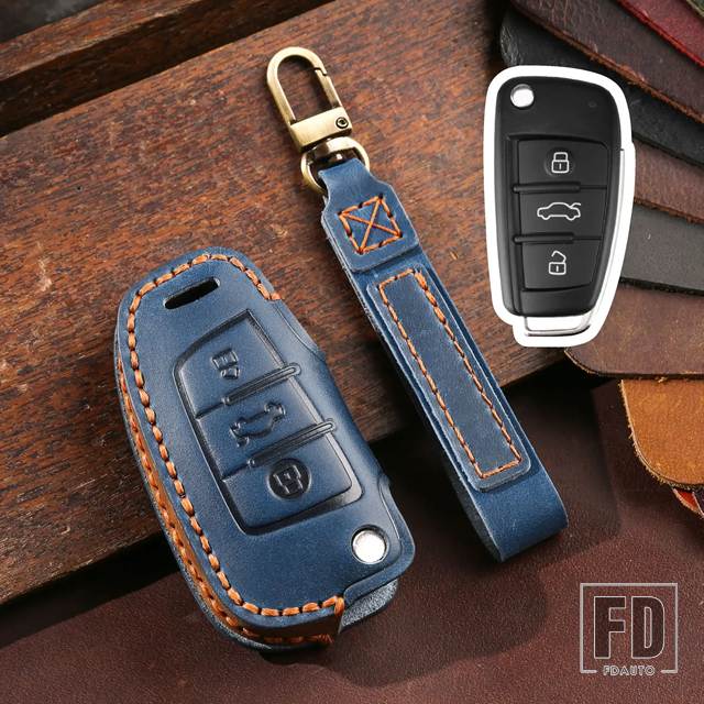 アウディ 革折りたたみキーケースカバー A3 8L 8P A4 B6 B7 B8 A6 C5 C6 4F RS3 Q3 Q7 TT 8L 8V S3 キーフォブシェルアクセサリー - Blue