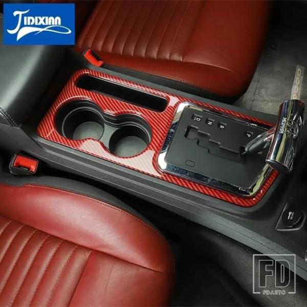ダッジチャレンジャー 2009-14 ギアカップホルダーパネル装飾カバーインテリアアクセサリー - red carbon friber