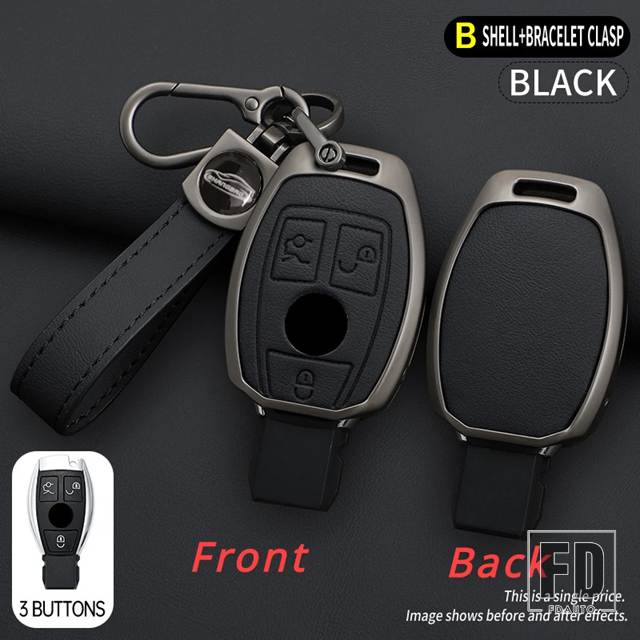 メルセデスベンツ 合金 + レザーキー FOB ケースカバー A B C E S G クラス W204 W205 W212 W213 W176 W177 GLC CLA カーアクセサリー - Black 1 pc