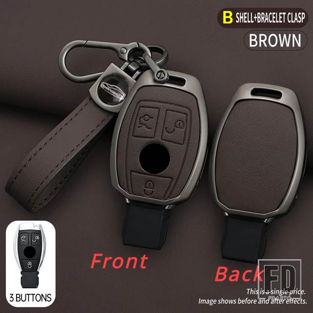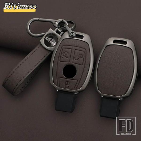 メルセデスベンツ 合金 + レザーキー FOB ケースカバー A B C E S G クラス W204 W205 W212 W213 W176 W177 GLC CLA カーアクセサリー
