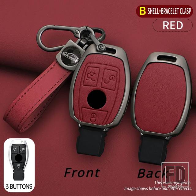 メルセデスベンツ 合金 + レザーキー FOB ケースカバー A B C E S G クラス W204 W205 W212 W213 W176 W177 GLC CLA カーアクセサリー - Red 1 pc