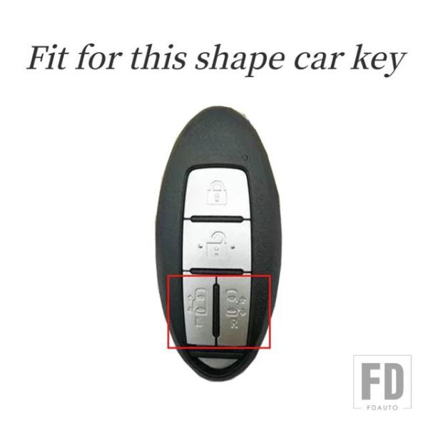 日産 本革キーケース クエスト MPV エルグランド NV200 エヴァリアセレナ 4ボタン リモート FOB スキンバッグキーホルダーキーカバー - Black